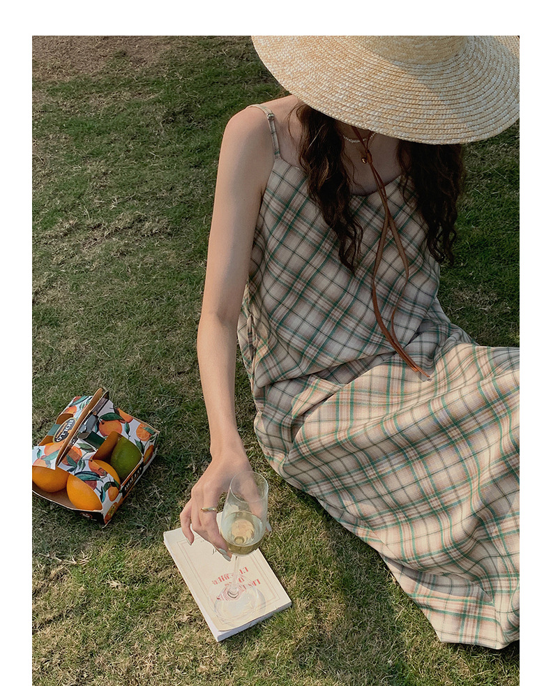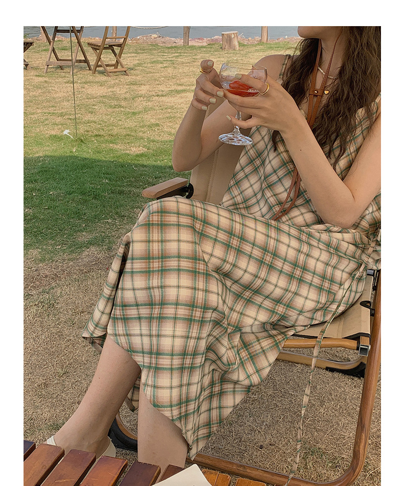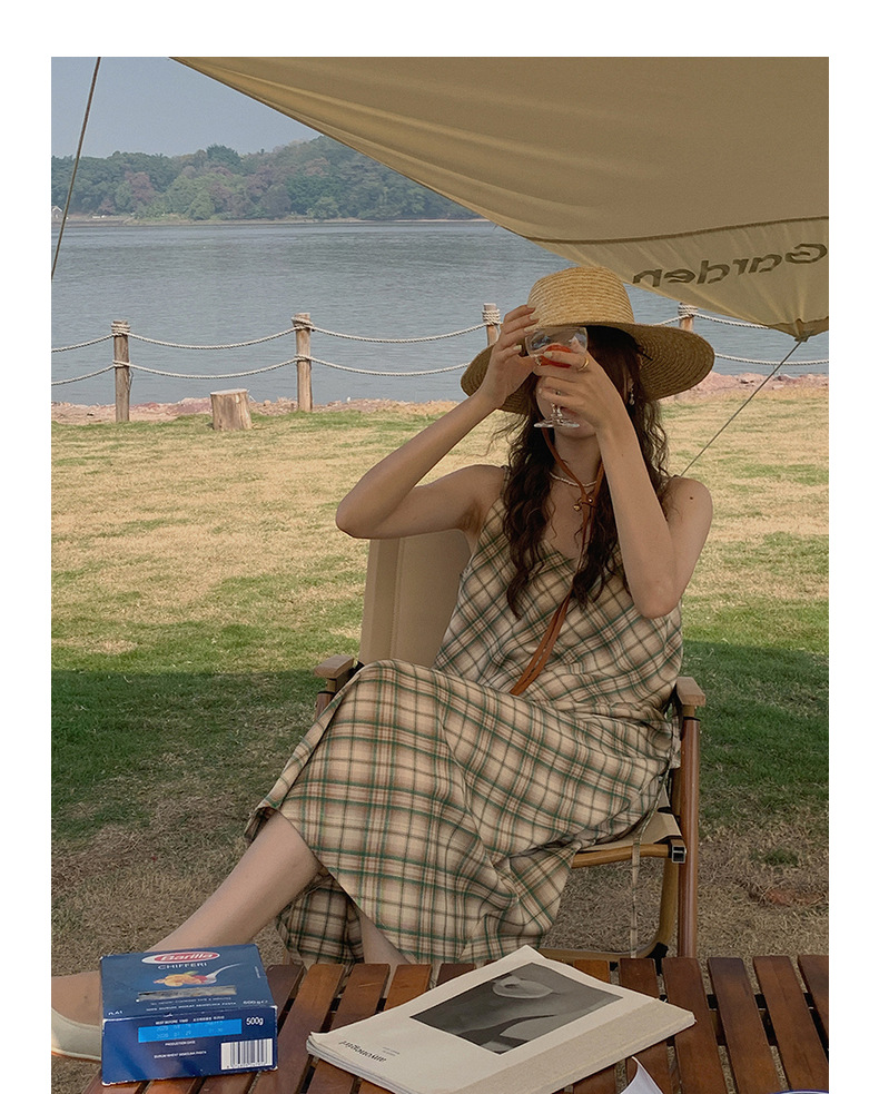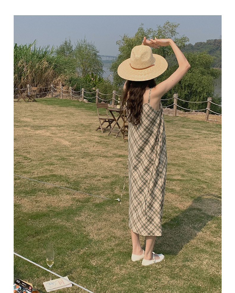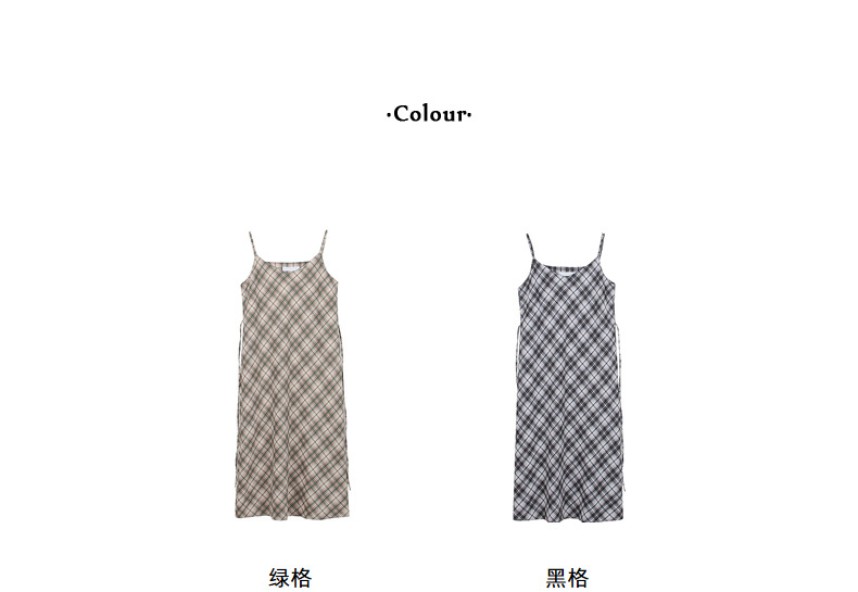 格子吊带连衣裙
